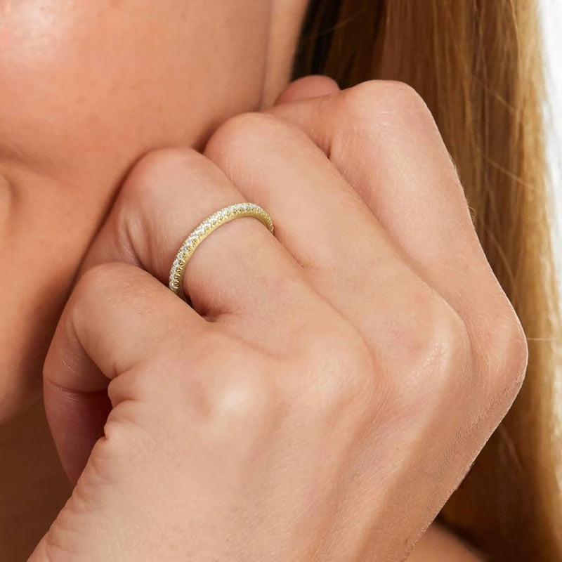 O Anel Eternity Slim é a personificação do luxo minimalista. Com um design ultra-fino e cravado com zircónias de brilho excecional, esta peça foi criada para ser a base do seu estilo diário. A simplicidade é a maior sofisticação da nova era: use-o sozinho para um toque delicado ou em conjunto com outros anéis para criar uma composição única e pessoal.